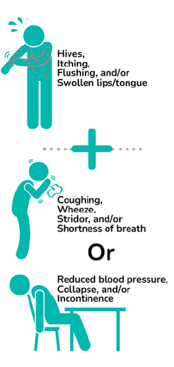 | A sudden onset of skin symptoms along with respiratory OR circulatory symptoms, including: