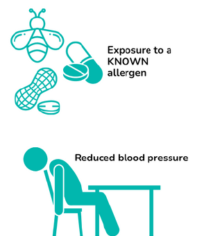 | Exposure to allergen AND a drop in blood pressure. |  |